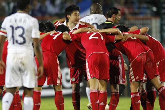 上半场结束时,中国队0比3落后。球员们垂首走回更衣室,张林峒双手叉腰低头不语,冀政浩摇头叹息,几名中后场球员互相拍肩却无人说话。看台上,随队远征的中国球迷区从开场的呐喊归于沉寂,少数国旗无力垂下,有人低头看手机不愿直视比分,留下的人面色凝重,掌声微弱而勉强。